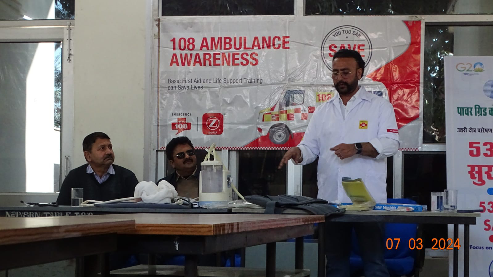 Pathankot, 15 March 2024: 108 Ambulance, a leading healthcare service provider in Punjab, took a significant step towards enhancing community well-being by organizing a First Responder Program at Power Grid, Sarna, Pathankot today. The primary objective of this program is to provide Staff with the vital knowledge base for dealing with any medical emergency and be hands-on with first aid assistance. The program was organized in the presence of Cluster Manager Joginder Singh and FRP trainer Jaswinder Singh.